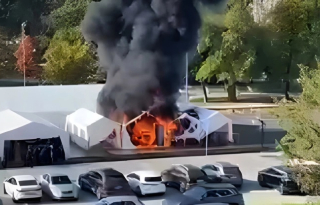• Пукање и голем пожар во шаторите пред српскиот Парламент во Белград | ВИДЕО