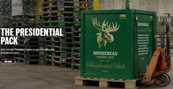 Пивара Moosehead, основана во 1867 година, објави огромна кутија со 1.461 лименка, што, под претпоставка - ако се пие по едно пиво дневно, е „доволно да го издржи целиот претседателски мандат“ на американскиот претседател Доналд Трамп.