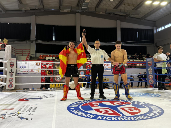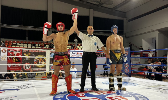 Максим Митровски од Кбк Шампион - Урко; тим се закити со пехар за најдобар сениор на ринг во Lou Kick дисциплината.