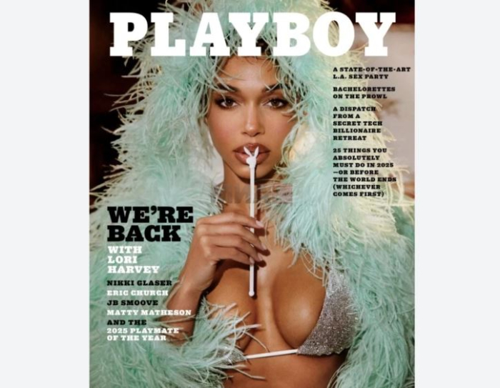 Таа, меѓу другото, позира и во светкави бикини, кус корсет-фустан, капут со пердуви, а и држејќи украс со зајакот – заштитен знак на „Плејбој“. За нејзиниот изглед се погрижи стилистката Лејла Бани. Во интервјуто, Харви говори за својата кариера и за тоа што значи да се биде пример за девојките. Ова издание на списанието ќе излезе на 10 февруари.